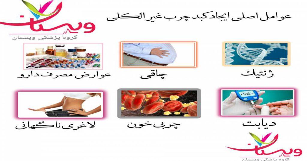 دیابت و قند خون بالا،فشارخون بالا چربی خون، کم کاری تیروئید،ژنتیک ،فعالیت پایین بدن ،عوارض مصرف برخی داروها وبارداری می تواند از عوامل ایجاد کبد چرب غیرالکلی NAFLD باشد.